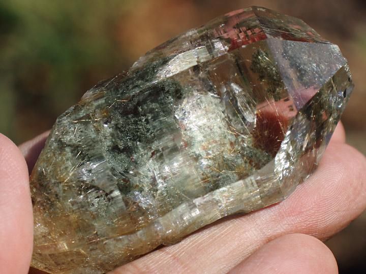 【高品質・DT・ルチル・クローライト・透明・虹入り・光沢】