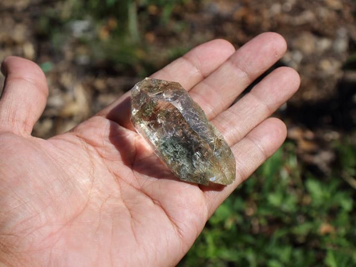 クリアーで照りのある面に映る内面の姿はまるで川の中や海の中を想わせるような水晶ポイントです。