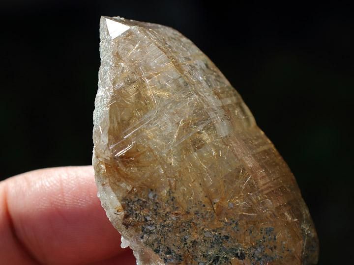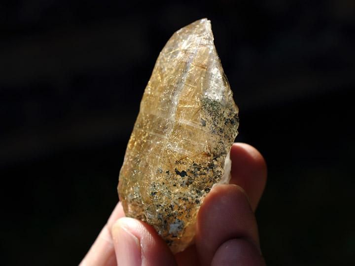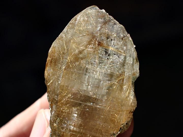 ゴツゴツとワイルドな姿にゴールドのルチルが神々しく映し出された水晶ポイントです。