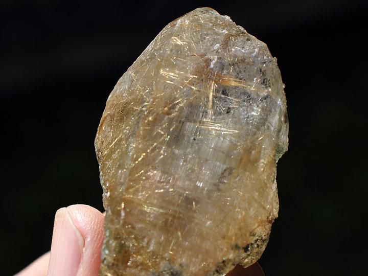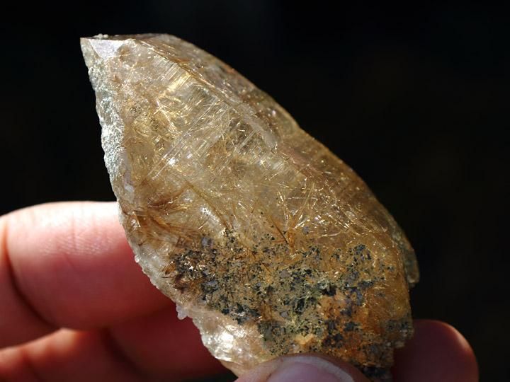 内部を覗きこむと放射状に伸びるルチルがまるで火花を散らすように輝いています。