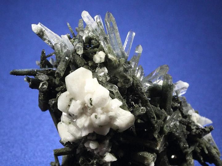 所々にアルバイト(曹長石)の結晶を伴い、クローライトの濃いグリーンとアルバイトの真っ白い色合いが見事なコントラストを創り出しています。