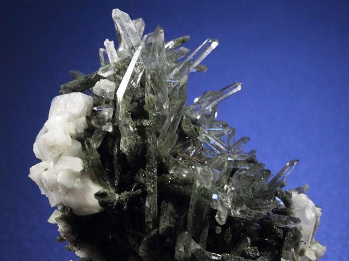 水晶と共生する他鉱物が独特な形状、様々な色合いをもたらし、芸術的な姿で楽しませてくれます。
