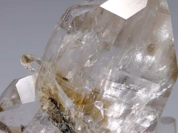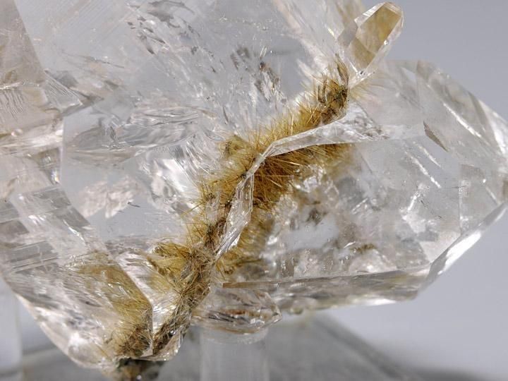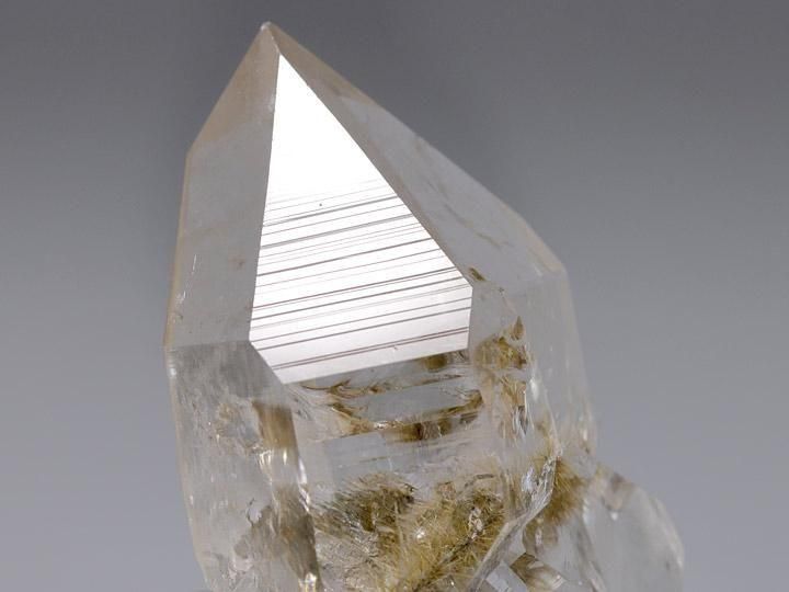 モスグリーンのクローライトや、とても繊細な針状のゴールデンルチルを伴います。
